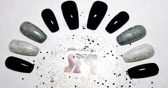 Gefalschte Schwarze Nagel Und Silber Glitzernden Nagel Zu Etsy