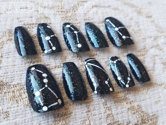 Glitzer Konstellation Falsche Nagel Schwarz Und Weiss Etsy