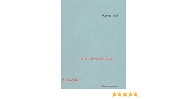 Seit Januar 16 ist das Recherchetool für deutschsprachige Literaturzeitschriften online Die Periodika werden ab Jahrgang 15 vorgestellt. Eine Schwalbe falten Gespeichert in Verfasser / Beitragende. Margret Kreidl, geboren 1964 in Salzburg, lebt als freie Schriftstellerin in Wien Theaterstücke, Hörspiele, Prosa, Gedichte In der Edition Korrespondenzen sind erschienen Laute Paare Szenen Bilder Listen (Buch mit CD, 02), Mitten ins Herz (05) und Eine Schwalbe falten (09) Margret Kreidl, Einfache Erklärung Alphabet der Träume.