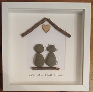 Pebble Art Picture Box Frame Present My Family Rocks Cat Dog Family Pets Gift Ebay