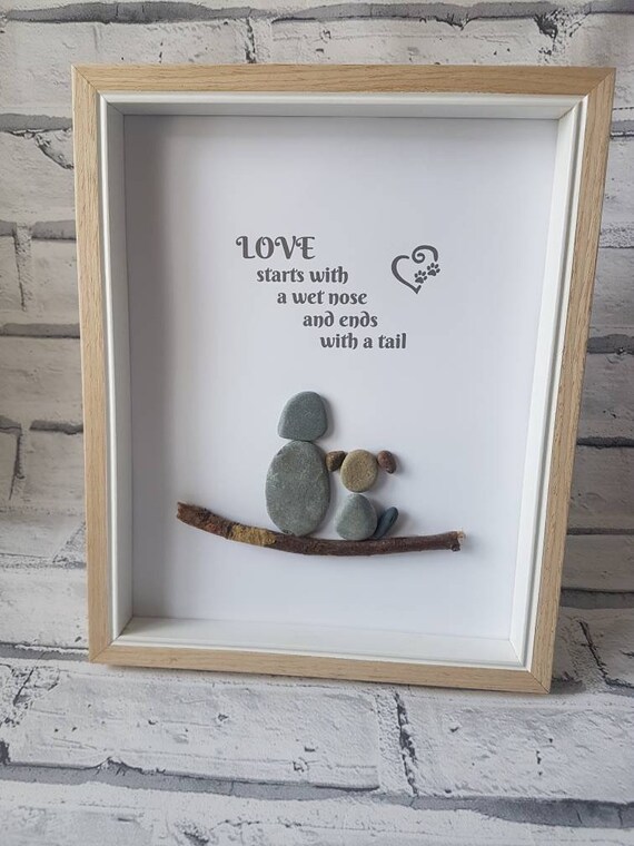 Dog Pebble Art Framed Pebble Art Dog Gift Housewarming Etsy