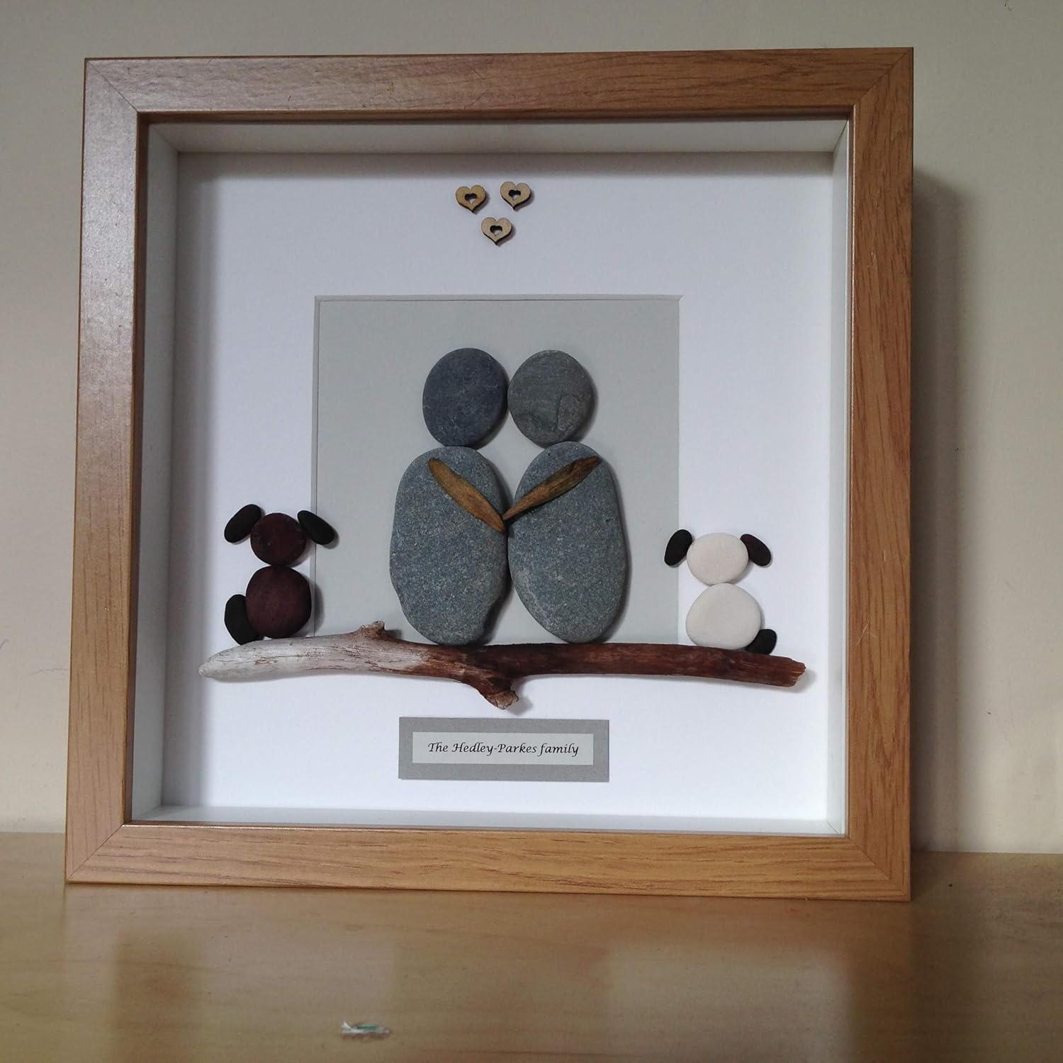 Pebble Art Couple With Two Dogs Amazon Co Uk Handmade