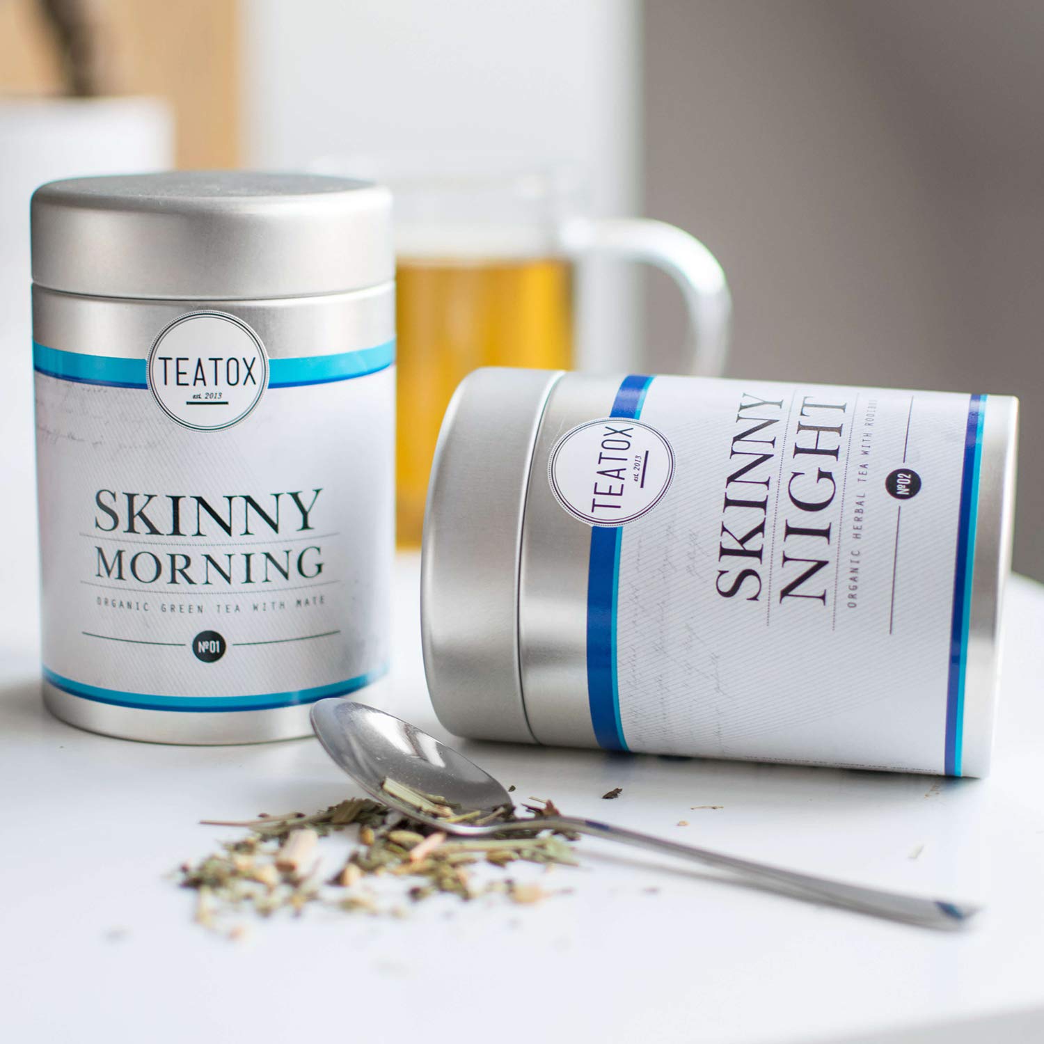 Teatox Skinny Morning Skinny Night Bio Gruner Tee Bio Krautertee 14 e Tee Programm Morgens Sencha Mate Abends Rooibostee Melisse Perfekt Durch Den Lose