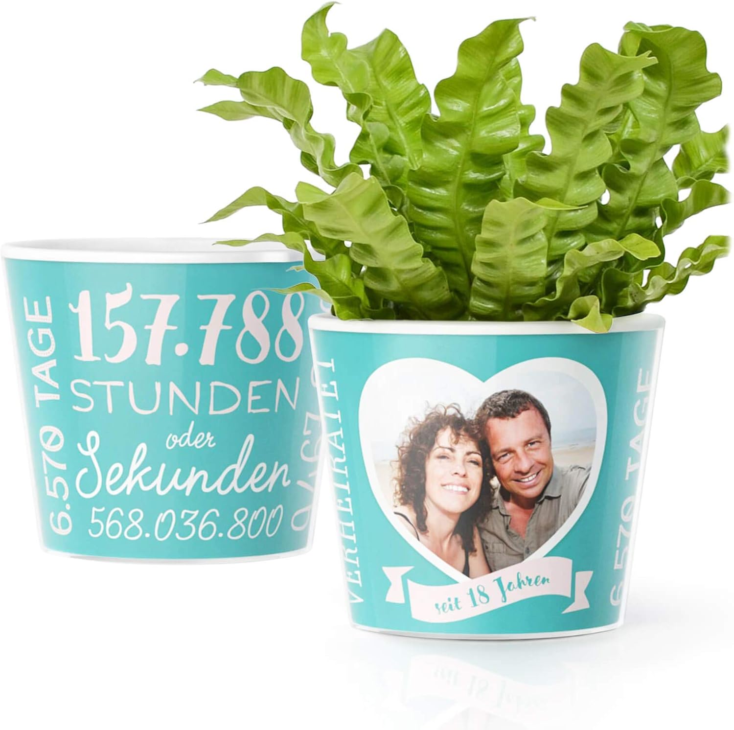 18 Hochzeitstag Geschenk Blumentopf O16cm Geschenkidee Zur Turkishochzeit Fur Mann Oder Frau Mit Herz Bilderrahmen Fur 1 Foto 10x15cm Glucklich Verheiratet 18 Jahre Amazon De Kuche Haushalt