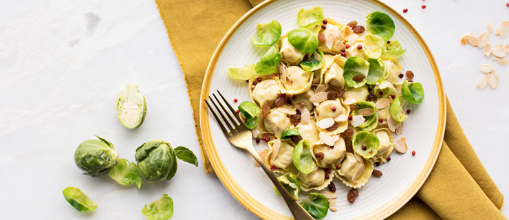 Recipe Prosciutto Cheese Tortelloni With Brussels Sprouts Almonds And Raisins Giovanni Rana