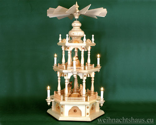 Pyramide 3 Stockig Christi Geburt Elektrisch Erzgebirgskunst Drechsel
