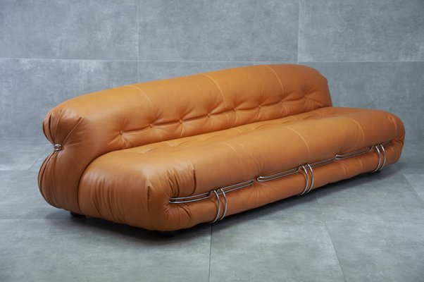 Cognacfarbenes Soriana Ledersofa Von Tobia Afra Scarpa Fur Cassina Italien 1970er Bei Pamono Kaufen
