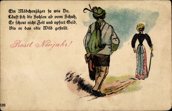 Vorlaufer Litho Gluckwunsch Neujahr Ein Madchenjager So Wie Du Mann Folgt Frau Nr Oldthing Ansichtskarten Gluckwunsch Kitsch Ak U