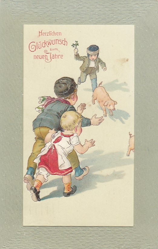 Neujahr Wunsche Mit Ferkel Jagd Gl1910 F4503 Ansichtskartenwelt De