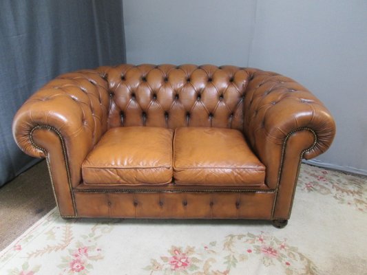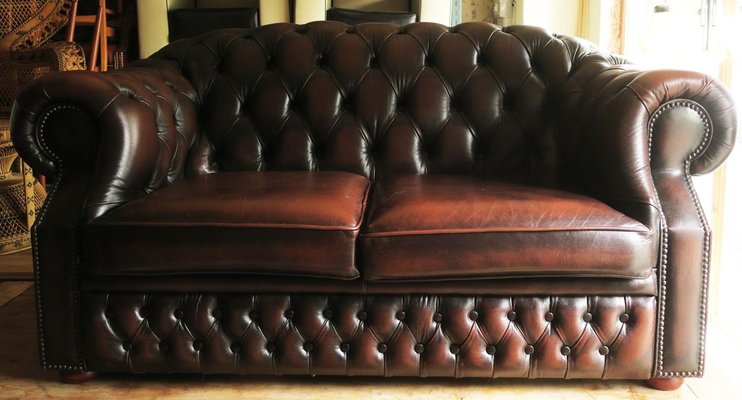 Sofa Chesterfield In Patina Braun Vintage Leder Zwei Sitze