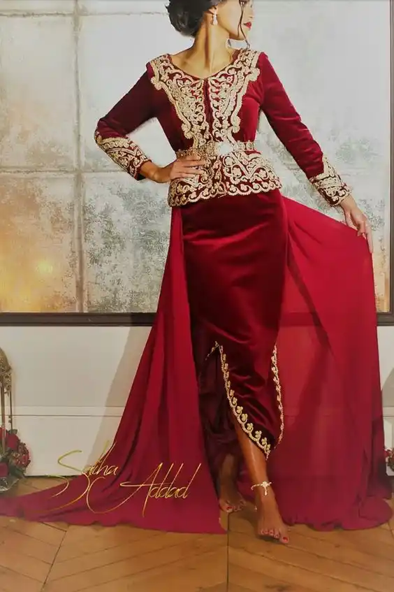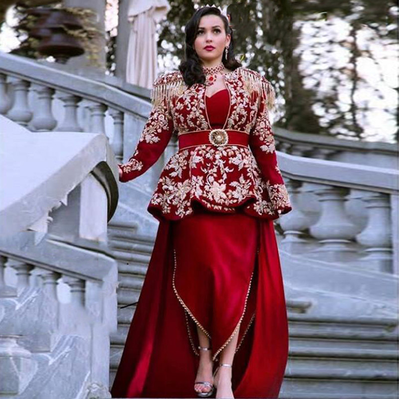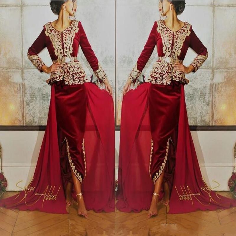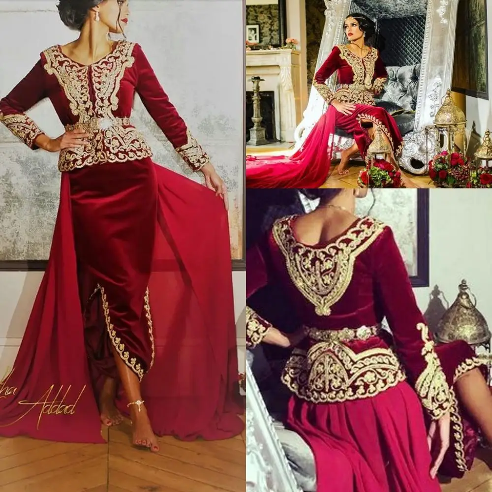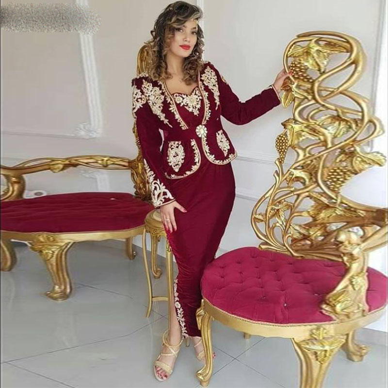 Kaftan Karakou Algerien Prom Formale Kleider Mit Langarm 19 Burgund Samt Gold Spitze Schosschen Anlass Abendkleid Tragen Abendkleider Aliexpress
