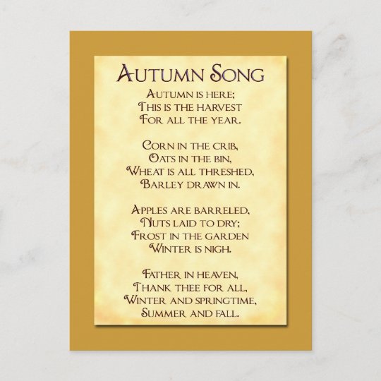 Herbst Lied Erntedank Gedicht Postkarte Feiertagspostkarte Zazzle De