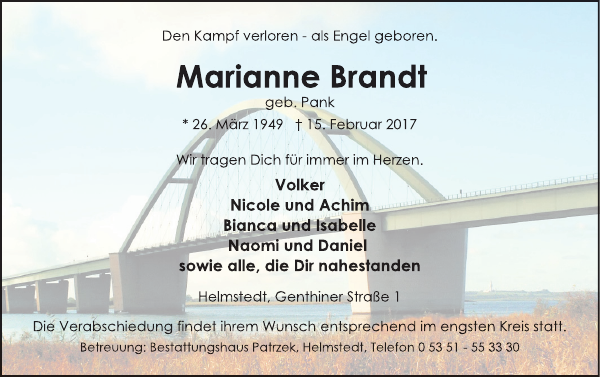 Marianne Brandt Traueranzeige Helmstedter Nachrichten