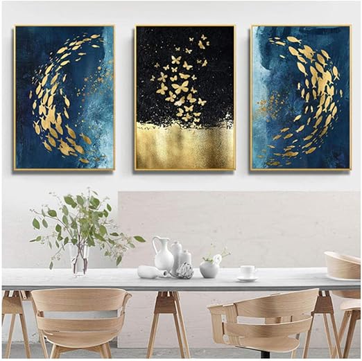 Dlfalg Wandbilder Abstrakt Tiere Bilder Schmetterlinge Fische Leinwandbilder Modern Luxus Blau Gold Poster Und Drucke Pop Art Dekor 60x80cmx3 Ohne Rahmen Amazon De Kuche Haushalt