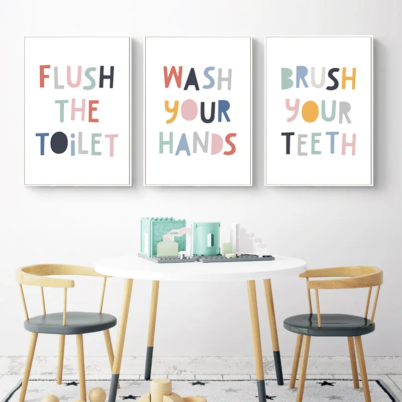 Bunte Baby Kindergarten Zitate Poster Lustige Druck Leinwand Kunst Malerei Nordic Kinder Dekoration Wand Bild Wc Badezimmer Dekor Malerei Und Kalligraphie Aliexpress