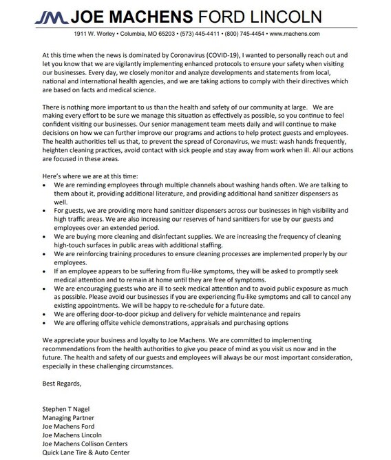 Joe Machens Ford Lincoln Covid 19 Update Joe Machens Ford