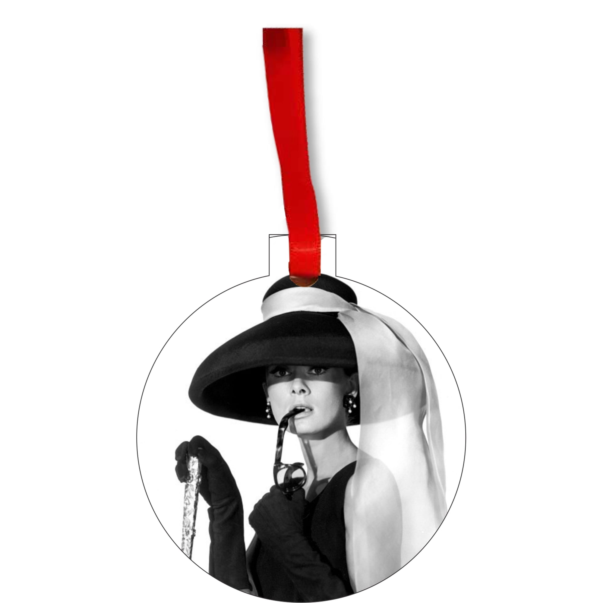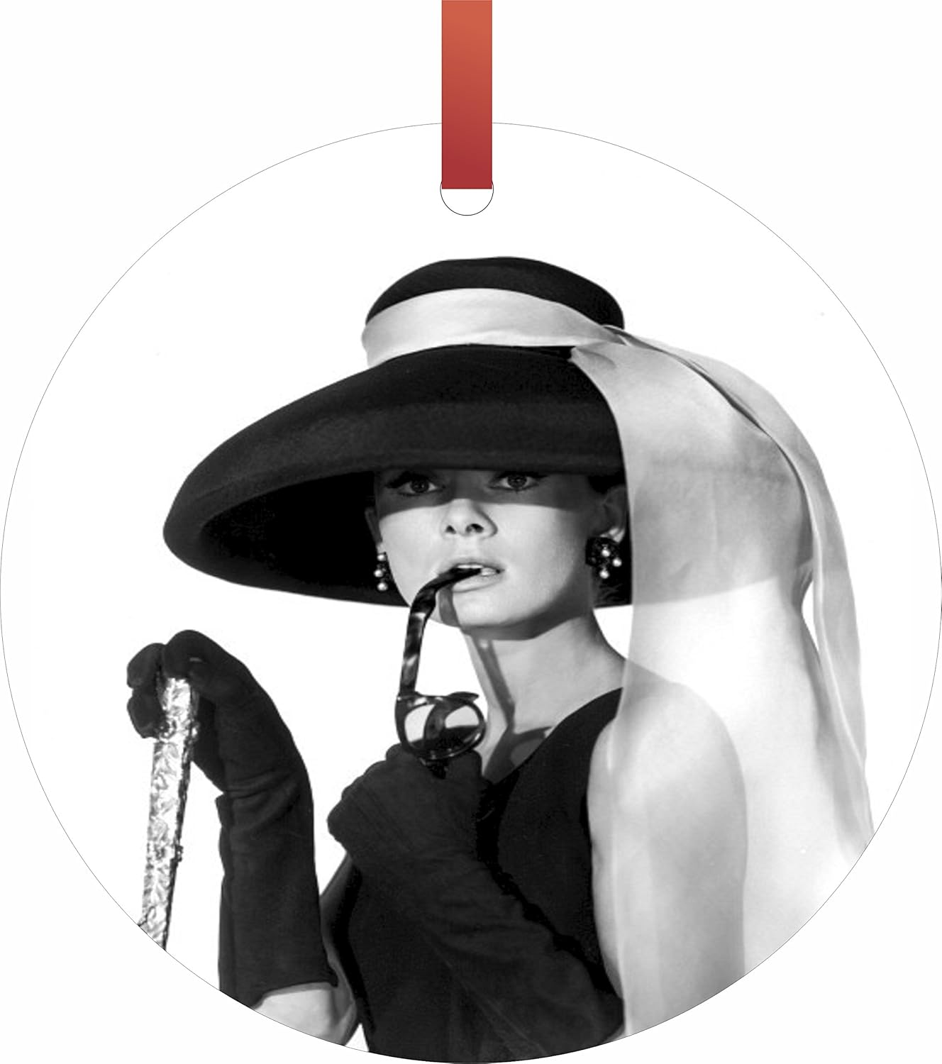 Amazon Com Audrey Hepburn With Sunglasses And A Hat Flat Round Shaped Christmas Holiday Ornament Double Sided Made In The U S A By Lea Elliot Inc Tm Home Kitchen