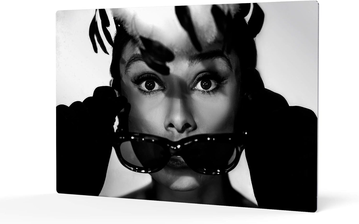 Amazon Com Hb Art Design Audrey Hepburn Wall Art Feather Hat Sunglasses Breakfast At Tiffany S Photoshoot Black And White Metal Wall Art Metal Print Wall Decor Artwork Bedroom Decor Living Room Decor 8x12