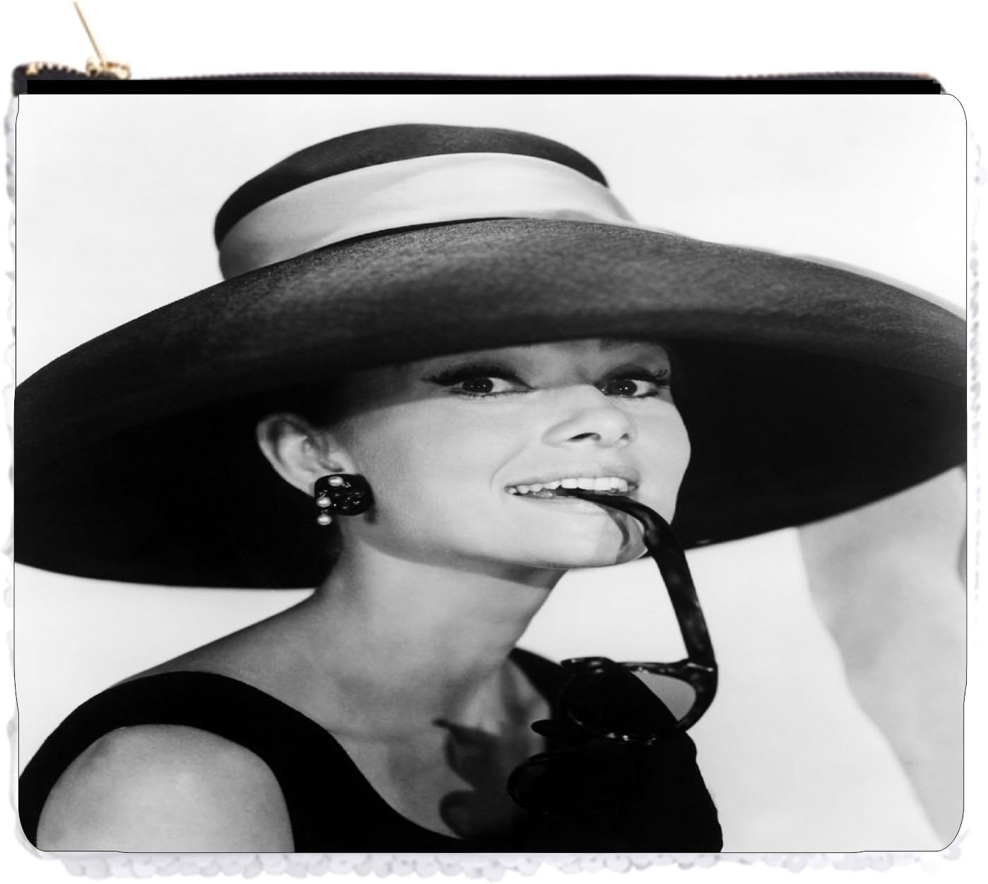 Amazon Com Actress Audrey Hepburn With A Hat And Sunglasses Double Sided 6 5 X 8 White Silver Two Tone Magic Sequin Pencil Case Bag Arts Crafts Sewing