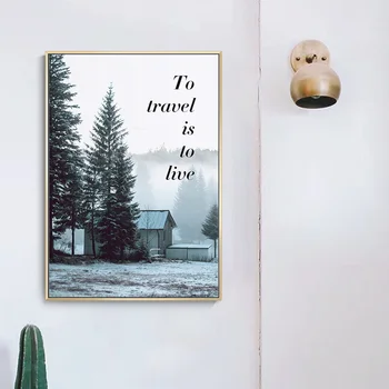 Nordic Modern Canvas Oil Painting Simple Letter Poster And Living Room Quiet Mountain Forest Art Decoration Painting Mural Leather Bag