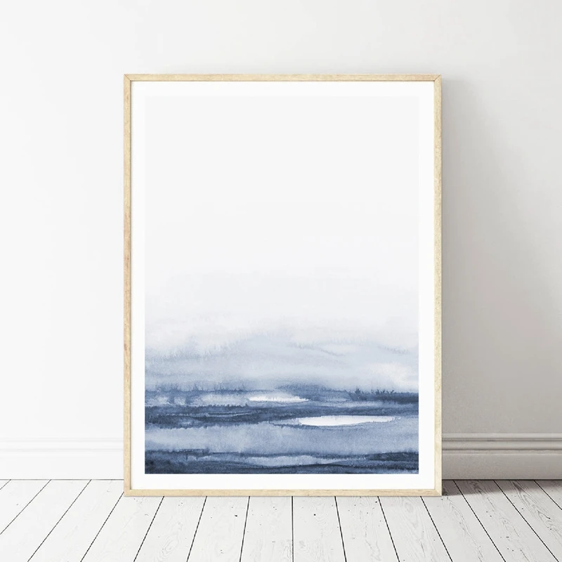 Watercolor Blue Canvas Painting Abstract Mountain Forest Art Prints And Poster Modern Simple Natural Picture Home Wall Art Decor Painting Calligraphy Aliexpress