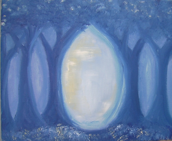 Enchanted Wood Blue Trees Original Oil Painting On Canvas Etsy