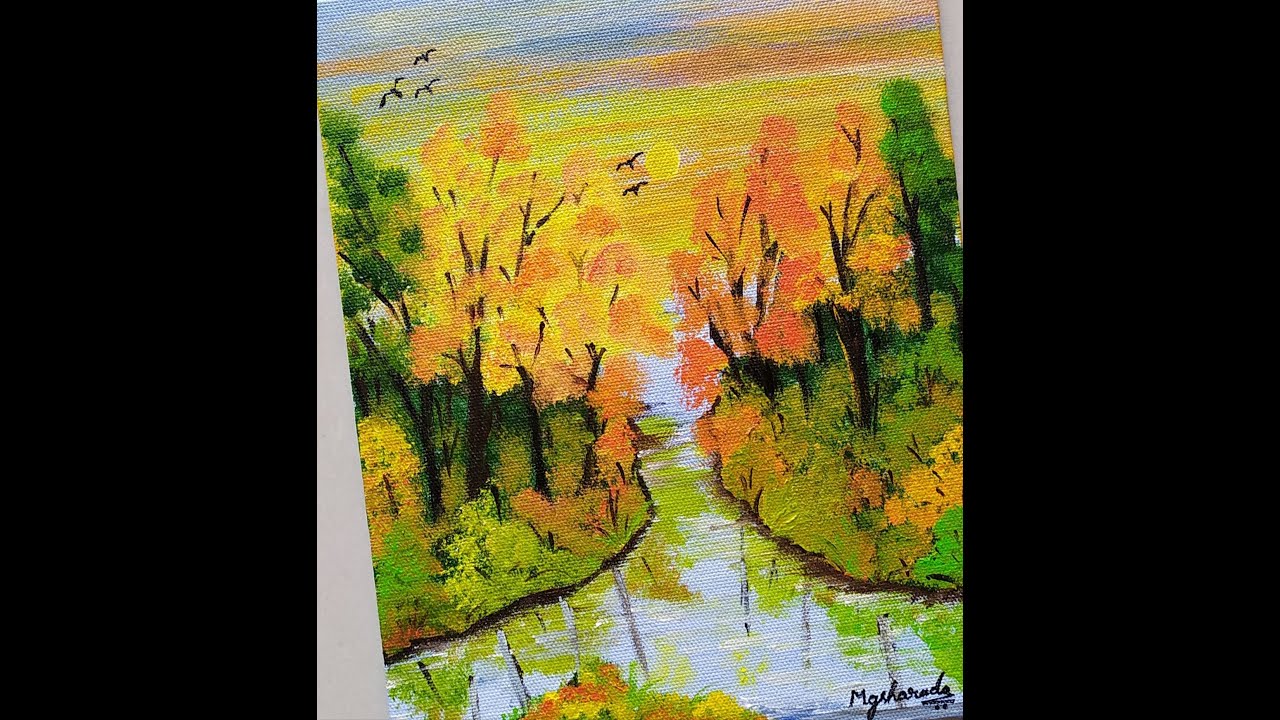 How To Paint Lake View In Autumn Forest Art Simple Acrylic Painting Youtube
