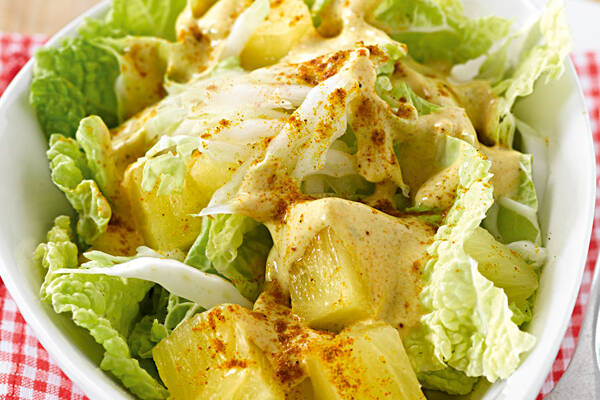 Chinakohlsalat Mit Ananas Im Sahne Senfdressing Rezept Kochbar De