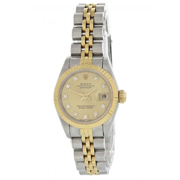 Rolex Datejust Champagne Diamond Dial 18k Yellow Gold Stainless Steel 2ct Vs Diamond Bezel On A Jubilee Band Ladies Pre Owned Watch Swiss Wrist
