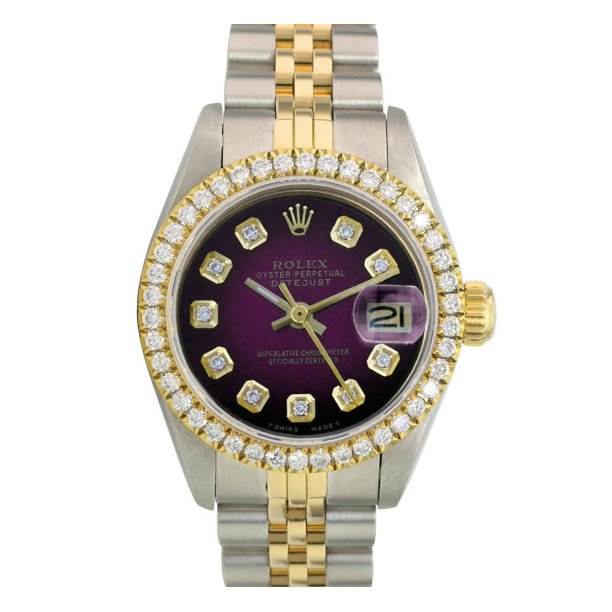 Rolex Rolex Watch Lady Datejust Gold Steel Purple Vignette Dial Diamond Bezel Walmart Com Walmart Com
