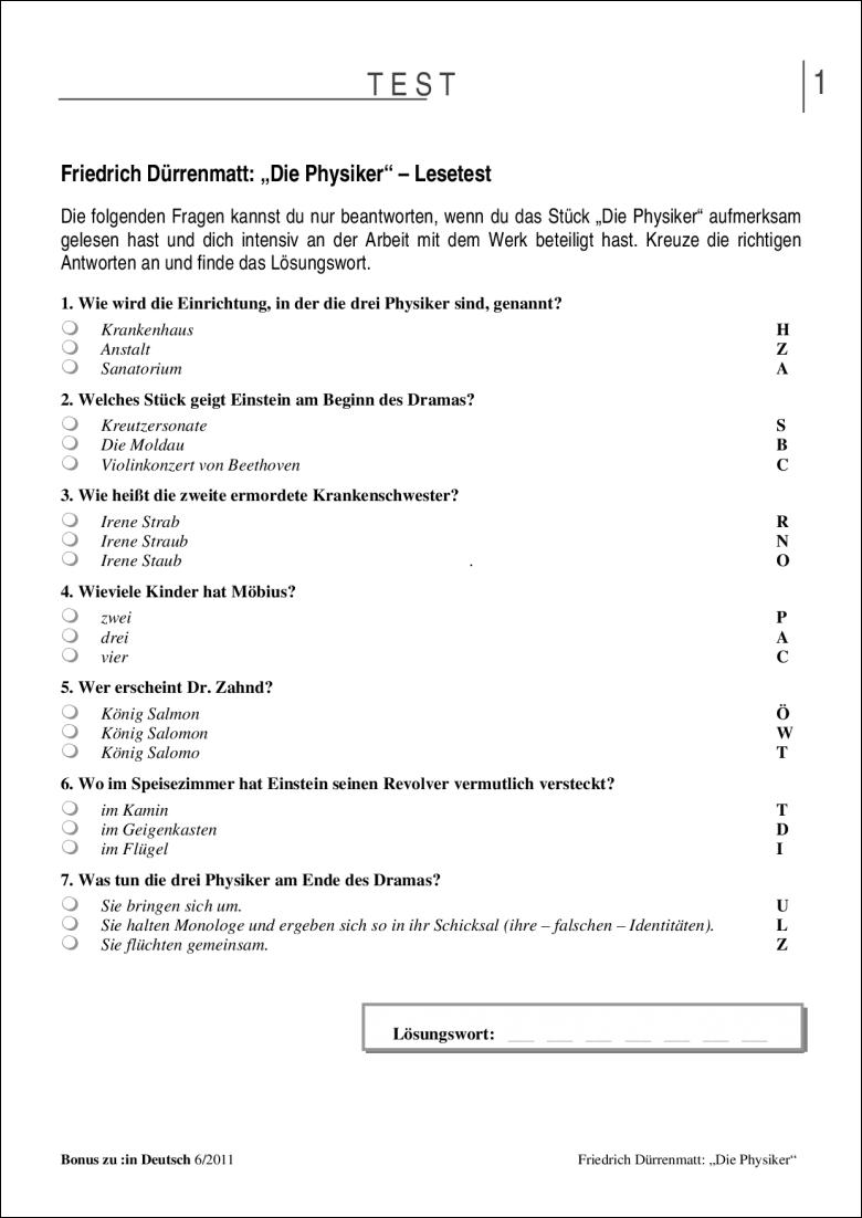 Test Und Klassenarbeit Die Physiker 9 10 Klasse In Deutsch Deutsch Sekundarstufe I Arbeitsblatter Online