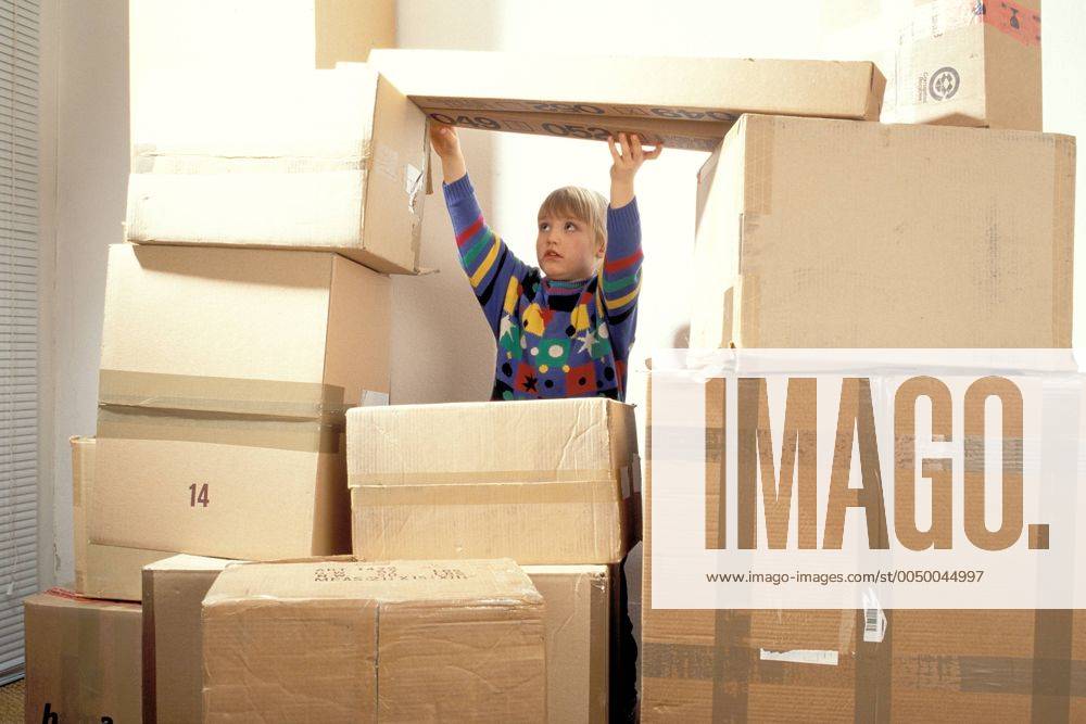 Stockfoto Kinder Bauen Mit Kartons Ein Haus Stockfoto