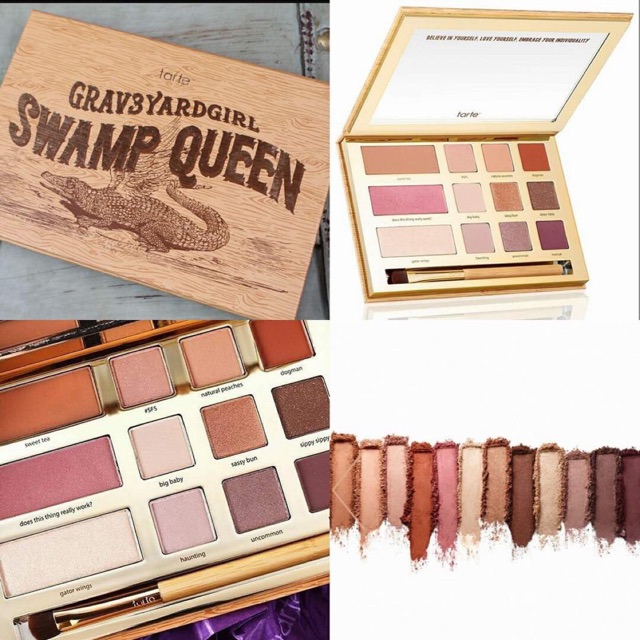 Tarte Swamp Queen Eye & Cheek Palette Tarte Swamp Queen Eye & Cheek Palette ($4500 for 064 oz) contains three cheek colors and nine eyeshadows The formula on some of the more matte shades was very, very silky and soft, but they kicked up a lot of excess powder in the pan and often sheered out when blended–more so than some of Tarte’s past palettes. Tarte Swamp Queen Grav3yardGirl Palette This Cruelty free, faux wood Limited Edition palette looks completely different to anything else out there With Gold embossing and a crocodile on the front this captures everything the “Swamp Girl” is However, if the collaboration does not excite you as much as the make up you will not be disappointed. Affiliate Links Tarte Swamp Queen palette in all it’s swampy glory!.