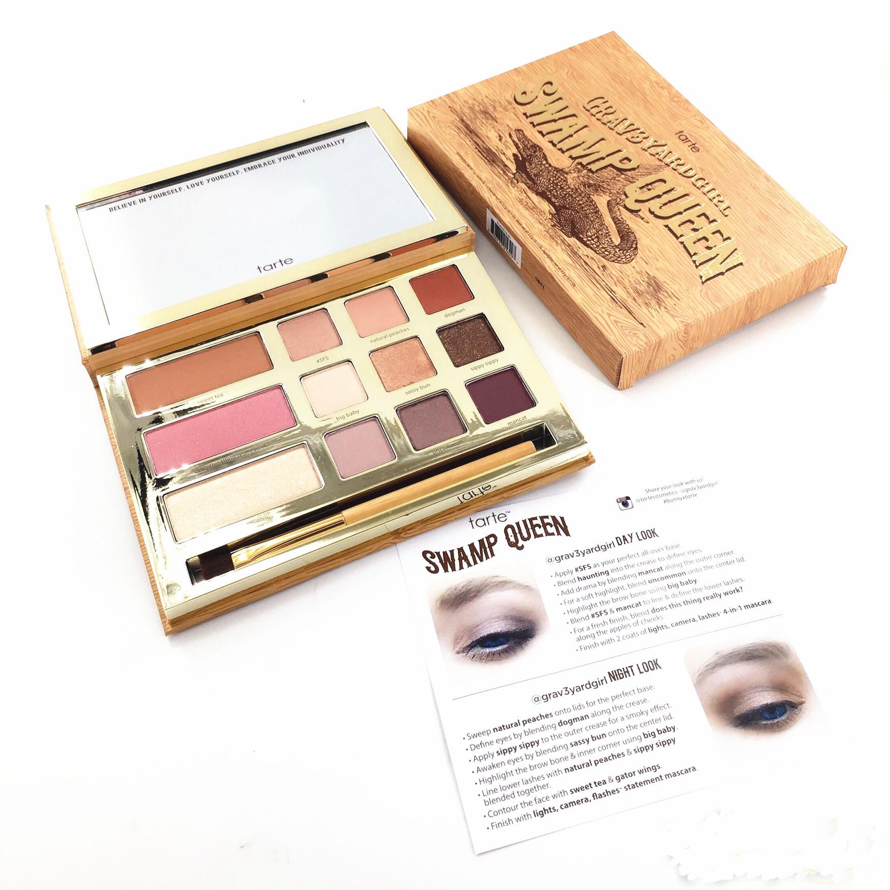 Well, well, well, looks like a Queen is reigning!. Tarte’s Swamp Queen palette is an excellent every day palette if you’re wanting to keep your look simple, yet poppin’ It’s very convenient and perfect for travel if the colors suit you, since you get nine eye shadow shades with a bronzer, blush and highlight in one convenient palette Nine shadows is more than enough to experiment and create different eye looks for a short period of. The limited edition Tarte Grav3yardgirl Swamp Queen Eye & Cheek Palette ($45) was briefly available early last week on Tarte’s website and quickly sold out This is a new collaborated eyeshadow and cheek palette that Tarte and youTube personality, Grav3yardgirl, worked on together.