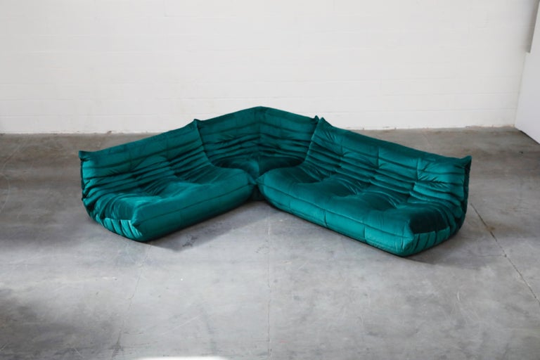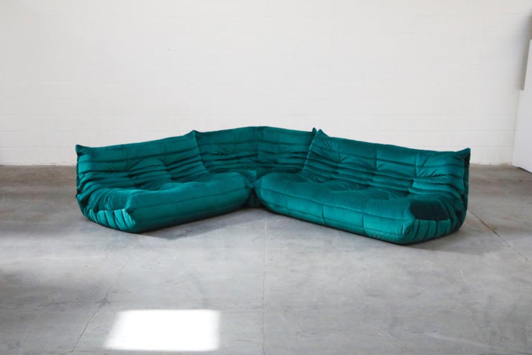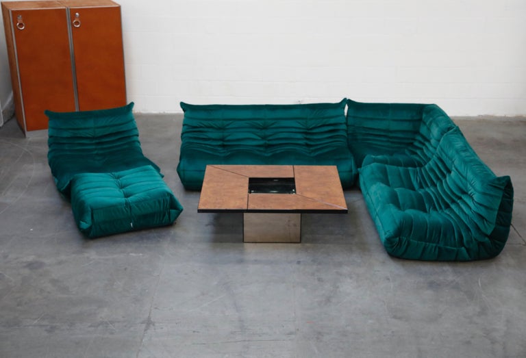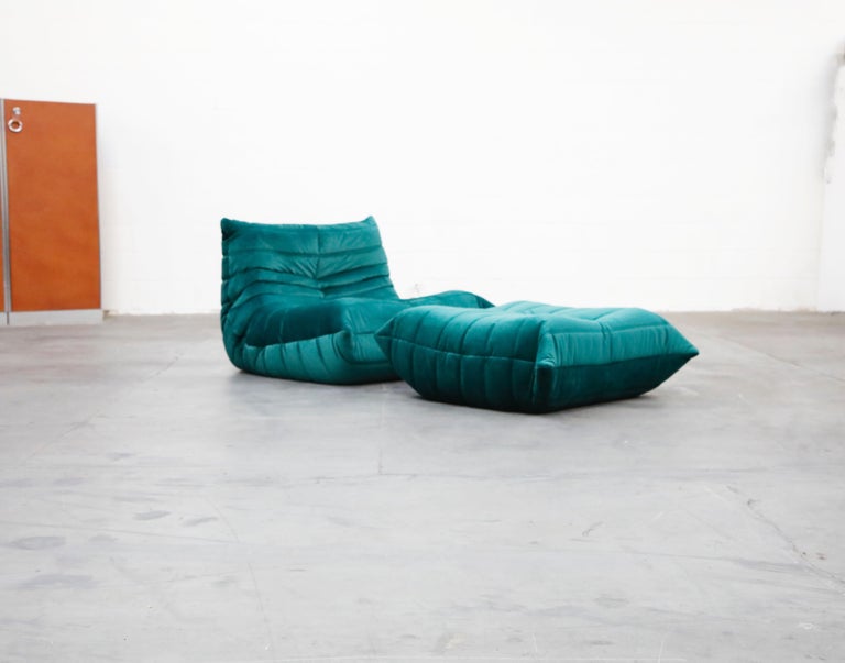 Togo Five Piece Set By Michel Ducaroy For Ligne Roset In Emerald Green Velvet At 1stdibs