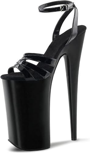 Extrem Plateau Heels Xtreme 875tt Lack Schwarz Pleaser High Heels Plateau Fesselriemchen Schuhe Frauen
