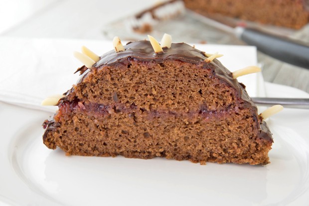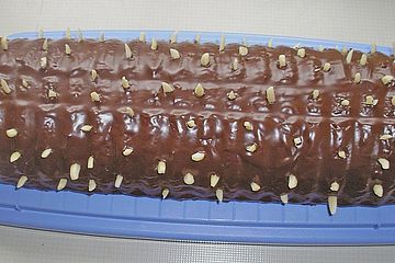 Rehrucken Kuchen Mit Schokoladenglasur Und Mandelstifte Gespickt Rezept Lecker