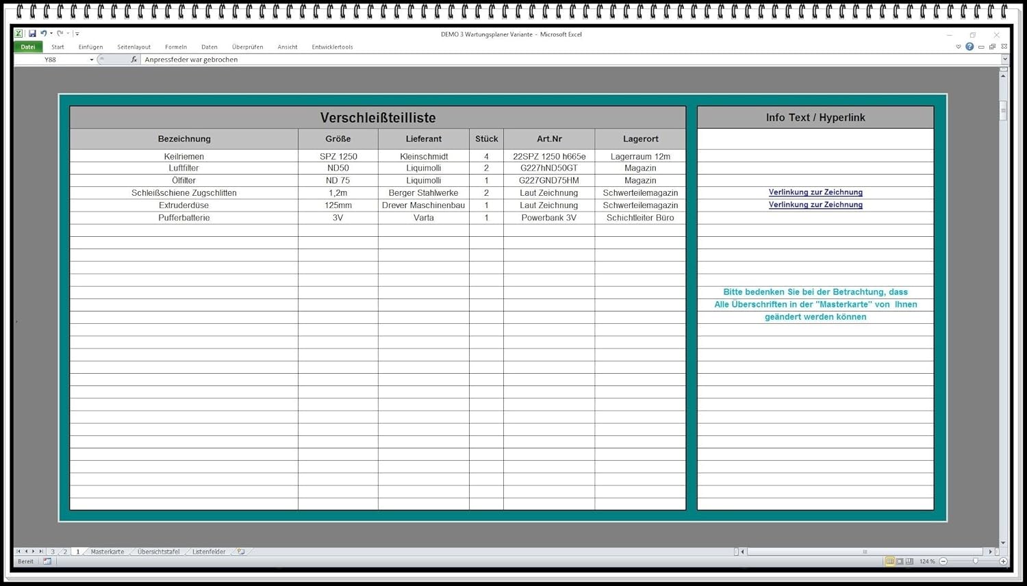 Excel Anwendung Wartungsplan Pdf Kostenfreier Download
