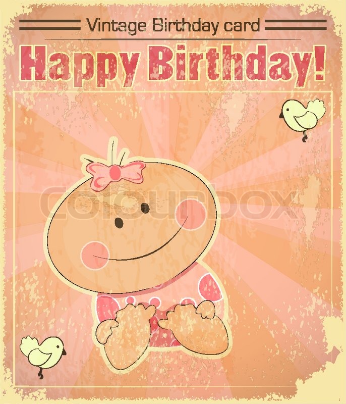 Retro Baby Madchen Geburtstagskarte Stock Vektor Colourbox