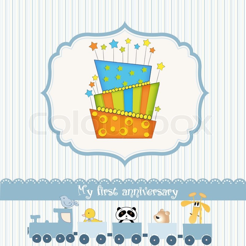 Baby Geburtstagskarte Mit Kuchen Stock Vektor Colourbox