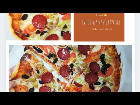 İncecik hamuruyla tam damak zevkinize layık bir pizza tarifi hazırladım sizlere Hazırlaması oldukça pratik olan zeytinli ev pizzası tarifi, tüm sofraların en sevileni olacak Yanında bol köpüklü ayran ile müthiş olur Dilerseniz, herkesin bayılarak yiyeceği, tarifini ilgiyle isteyeceği müthiş pizzamızın yapılışına. 2 büyük boy domates 2 diş sarımsak 3 yemek kaşığı sıvı yağ 2 yemek kaşığı salça 1 tatlı. Açtığımız hamuru pizza tepsisine almadan önce boyutu uygun mu diye kontrol edelim Nefis ev yapımı pizza tarifi hazır Afiyet olsun evde kolay pizza tarifi nefis yemek tarifleri, Evde pizza tarifi, Karışık pizza Tarifi, Kolay pizza hamuru, Kolay pizza Tarifi, pizza kaç kalori.