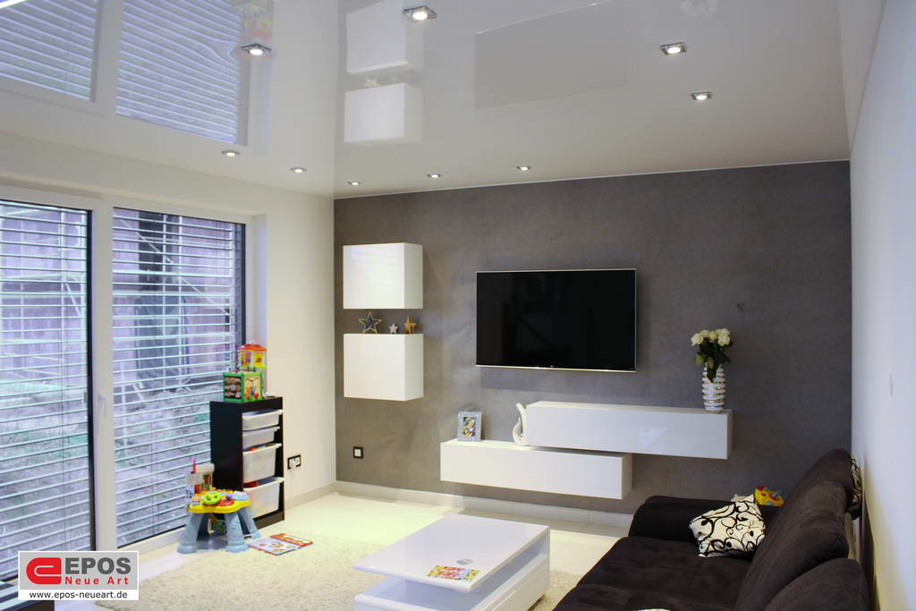 Spanndecke Weiss Hochglanz Wohnzimmer Decke Renovieren Beleuchtung Licht Einrichtung Spanndecken Wohnzimmer Decke Architektur Innenarchitektur