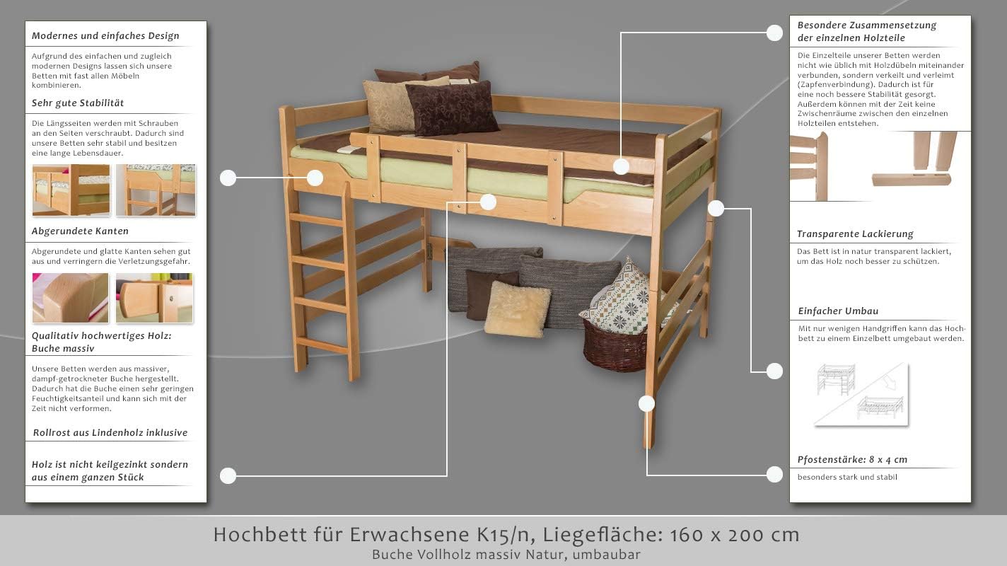 Hochbett für Erwachsene Hochbett Vergleich 140 x 0cm 90 x 0cm Etagenbetten Test Ratgeber Funktionsbett 90x0. Für viele Kinder ist es ein Traum und auch Erwachsene denken gerne noch daran zurück, wie sie als Jungen und Mädchen im Ferienlager darin schlafen durften Hochbetten sind nicht nur spannend, sondern sie bieten dir automatisch zusätzlichen Stauraum unter ihrem Lattenrost. Hochbett für Erwachsene Easy Premium Line K15/n, Buche Vollholz massiv weiß lackiert, umbaubar Liegefläche 140 x 0 cm Beige Moderne Hochbetten lackiert aus Kiefer mit Schublade 545,00 615,00.