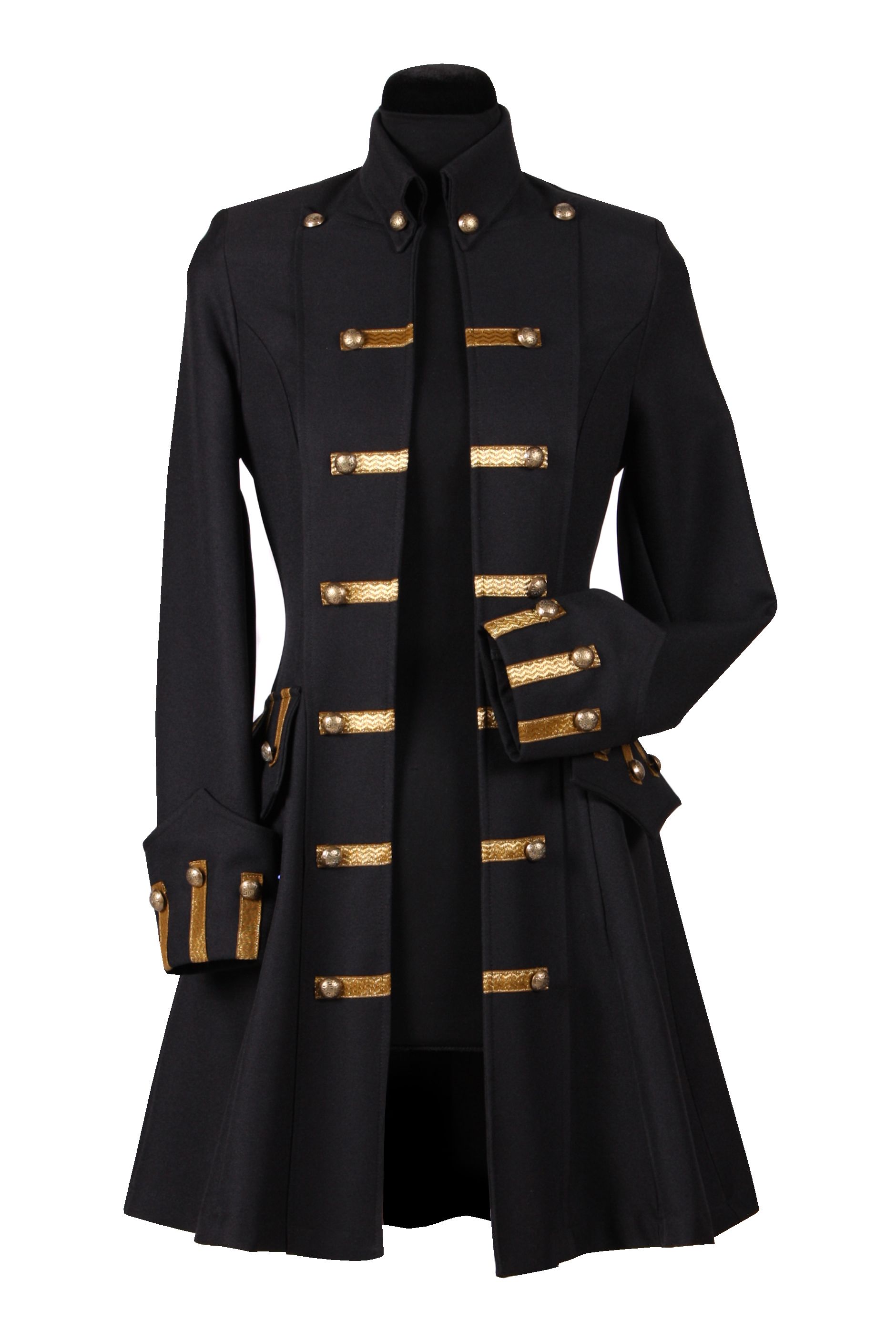 Damen Gehrock De Luxe Mantel Fur Piratin Schwarz Gold Jacke Freibeuterin Shoperama