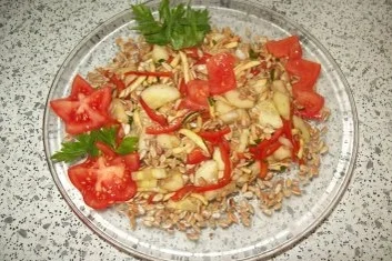 Auberginen Tomaten Salat Mit Susssaurem Honig Dressing Und Pikanten Sonnenblumenkernen Madam Rote Rube Die Landkuche