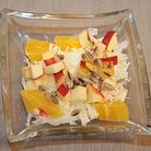 Chinakohl und Apfelscheiben mit dem SaureSahneDressing mischen Mit 1/2 Beet abgeschnittener Kresse und Walnüssen bestreut servieren 150 g saure S ahne mit 3 1/2 El Zitronensaft und 2 Tl Zucker verrühren.