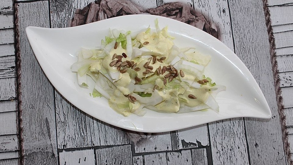 Chinakohl Weisskohl Salat Mit Joghurt Leinol Dressing Und Sonnenblumenkernen Von Patty Chefkoch