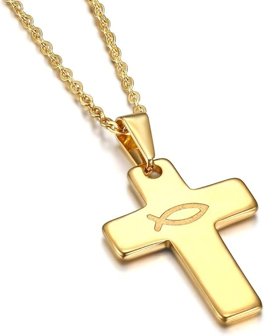 Bobijoo Jewelry Anhanger Kreuz Evangelische Ichthus Fisch Jesus Stahl Gold Halskette Kette 28mm Gispy Taufe Amazon De Schmuck