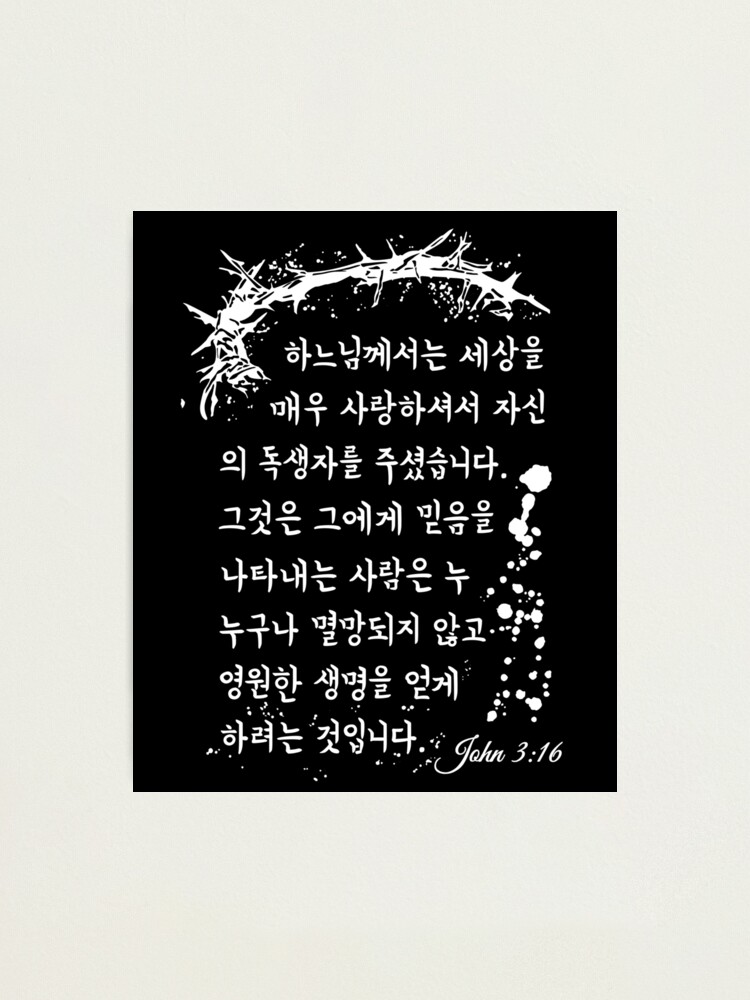 Bibelvers Johannes 3 16 Denn Gott Liebte Die Welt Koreanisch Fotodruck Von Kleynard Redbubble