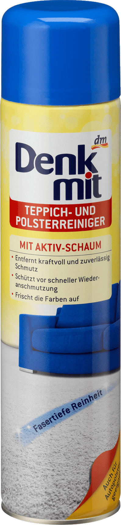 Trotz der Tatsache, dass diese immer wieder manipuliert werden können, geben diese in ihrer Gesamtheit einen guten Gesamteindruck Was für ein Endziel visieren Sie nach dem Kauf mit Ihrem Polsterreiniger dm an?. Aufbewahrungs und Verwendungsbedingungen Materialverträglichkeit an unauffälliger Stelle auf Farbechtheit überprüfen Nicht empfohlen für Samt, Seide und Leder sowie alle Materialien, die nicht für eine Nassreinigung geeignet sind. Das Denkmit Reinigungsmittel für Teppiche und Polster wirkt mit dem AktivSchaum dreifach stark Schmutz und unangenehme Gerüche werden fasertief entfernt Der AntistatikEffekt verhindert zudem eine schnelle Wiederanschmutzung Die Farben der Textilien werden von dem Teppich und Polsterreiniger.